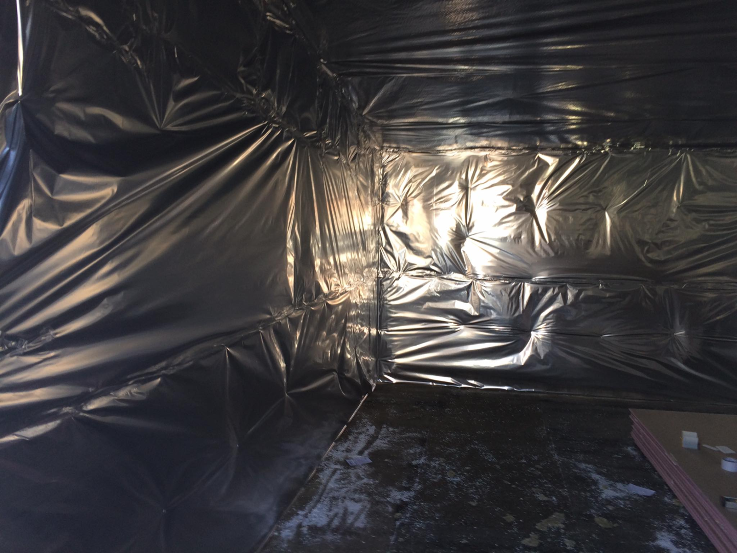 Belső terei gipszkarton falakat és mennyezetet kaptak, fekete színben, míg homlokzati burkolata nemesvakolat. Szigetelése falszerkezeten belül 15, kívül + 10 cm, födémben 25 cm.