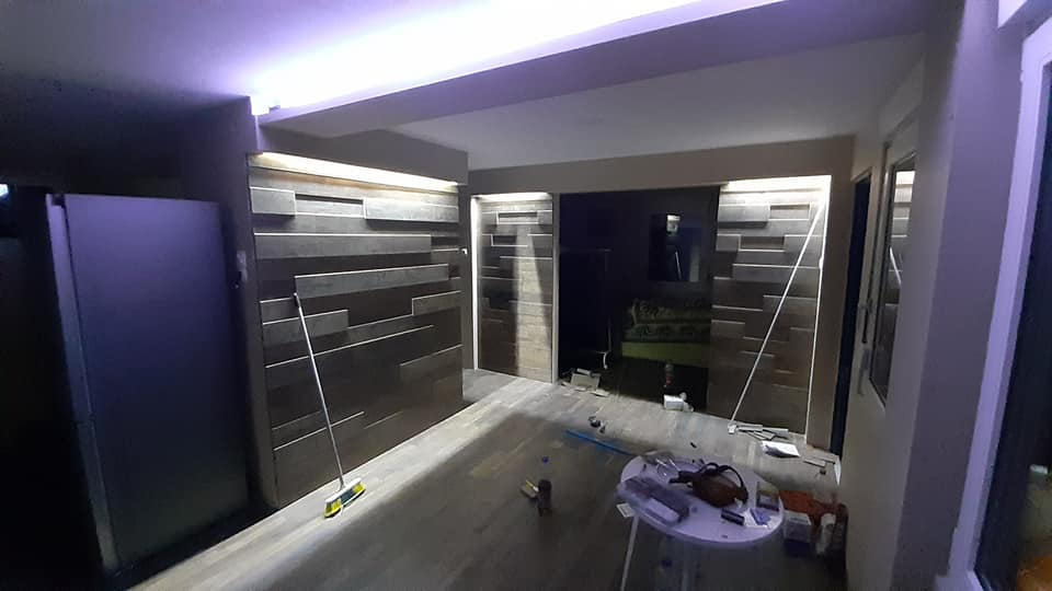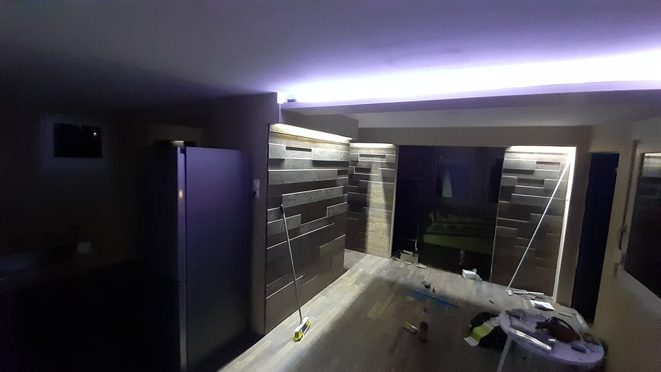 Egyedi megoldásai: A ház vázszerkezetét 3 db irodakonténer alkotja, amik beton cölöpökön állnak. Belső falainak egy része 3d falburkolattal készült, rejtett ledes megvilágítással.