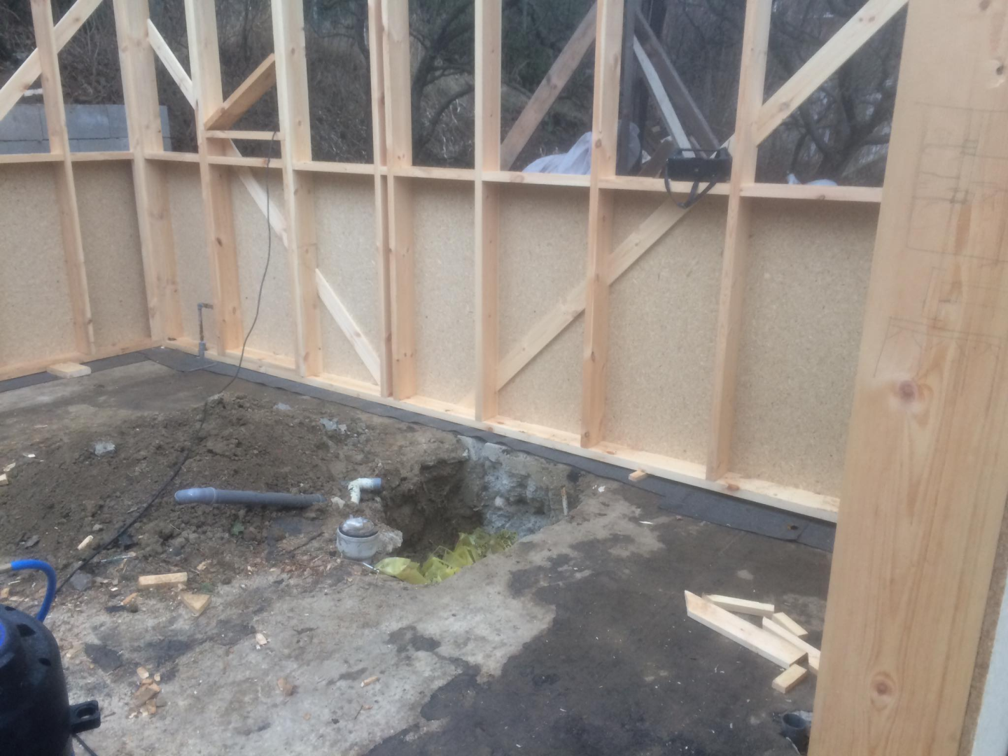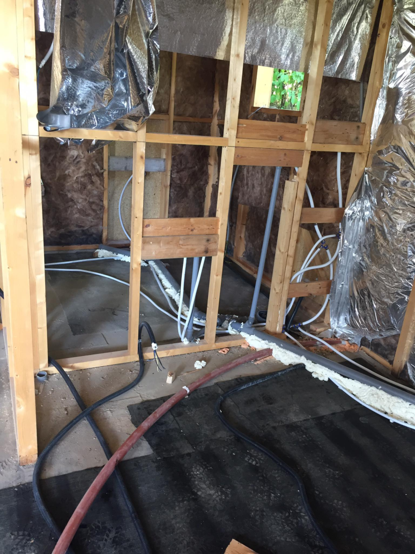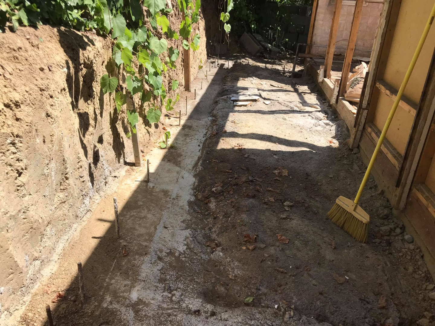 Kihívásokkal teli munka várt ránk Verőcén. A helyszínen állt egy régi épület, amit lebontottunk, és annak a beton alapjára terveztük az új épületet. A buntást követően derült fény a korábbi alap nem megfelelő minőségére, ami már a kezdésnél extra munkát jelentett. A meglévő betont, acél talajcsavarok segítségével megerősítettük, majd ezt követően a ház mögötti domboldalt egy támfallal láttuk el. A támfal és a régi alap közötti részt betonoztuk, így megnövelve a lehetséges alapterületet.