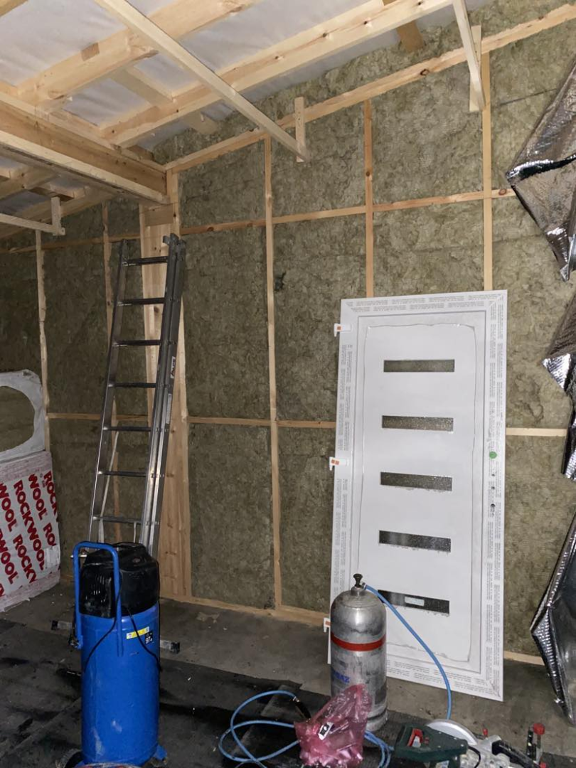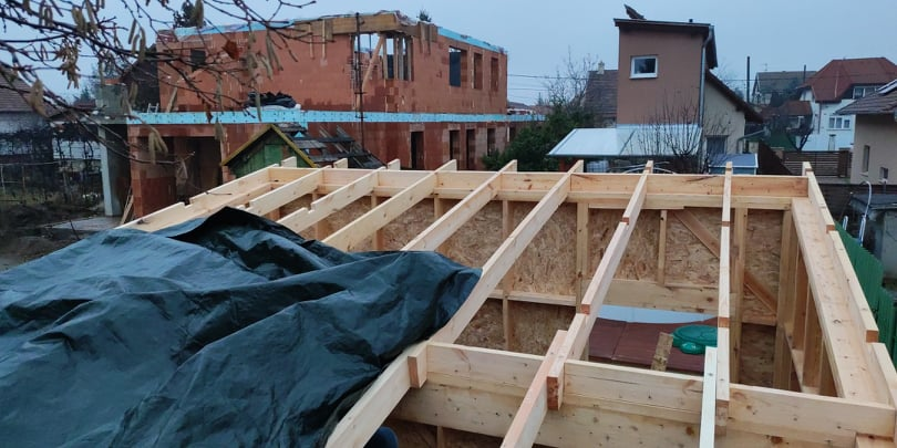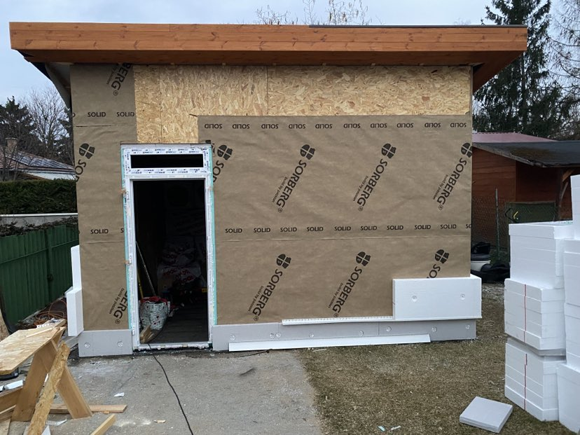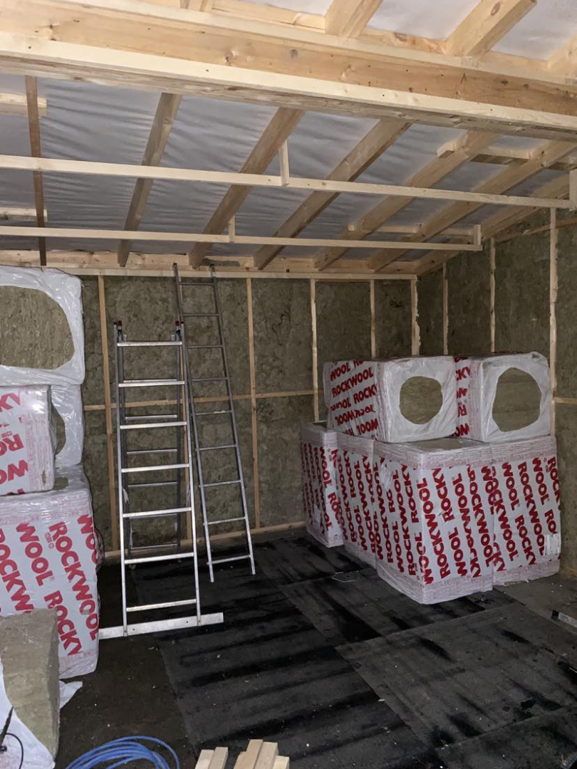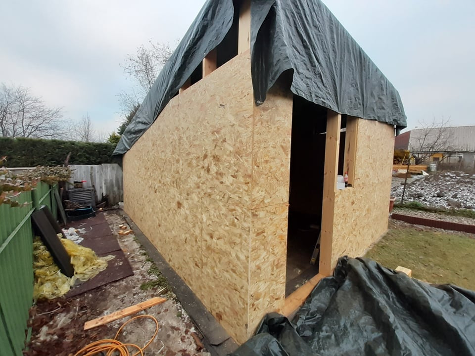 Pest vármegyében, Dunakeszin építettük ezt a hagyományos megjelenésű, féltetős melléképületet. A ház beton alapja már korábban elkészült, azzal nekünk - a vízszigetelés kivételével - nem volt feladatunk. Funkciója miatt belül a tér osztatlan, egyetlen nyílászárója a bejárati ajtó.