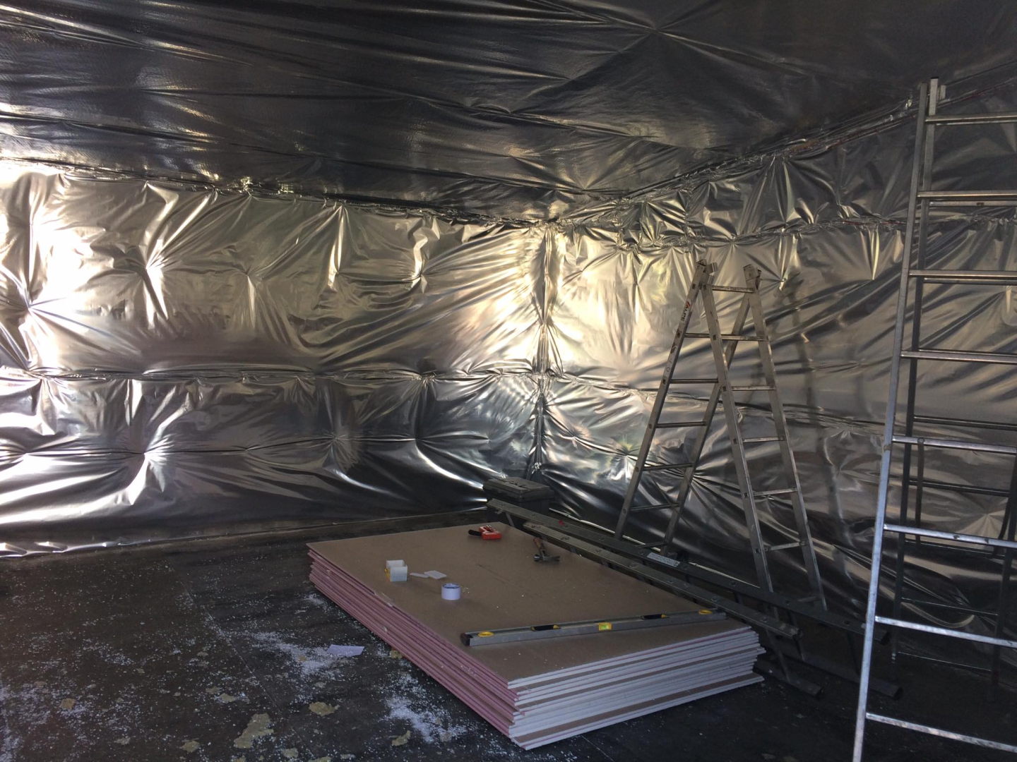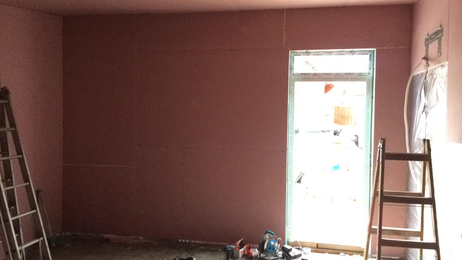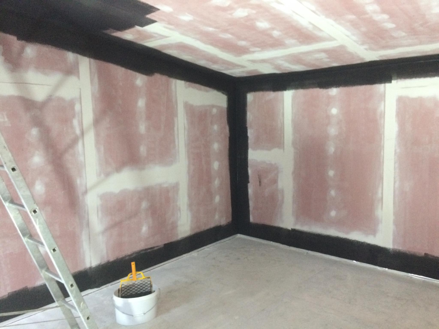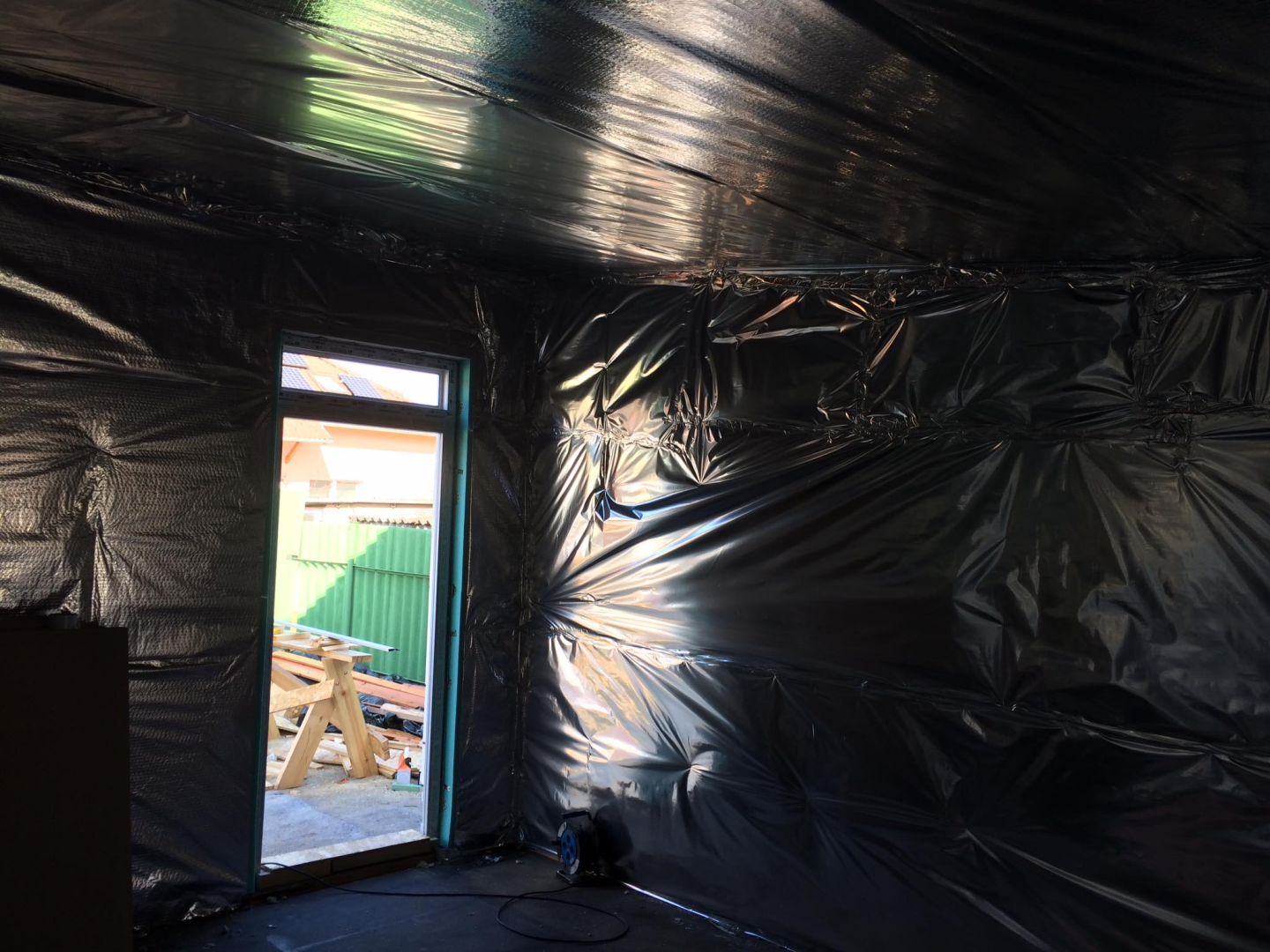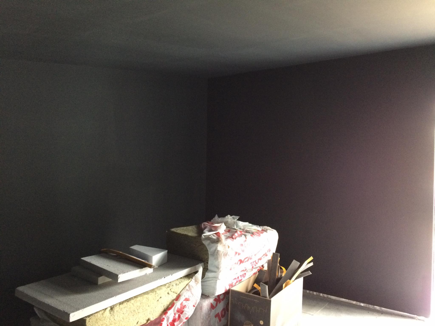 Belső terei gipszkarton falakat és mennyezetet kaptak, fekete színben, míg homlokzati burkolata nemesvakolat. Szigetelése falszerkezeten belül 15, kívül + 10 cm, födémben 25 cm.