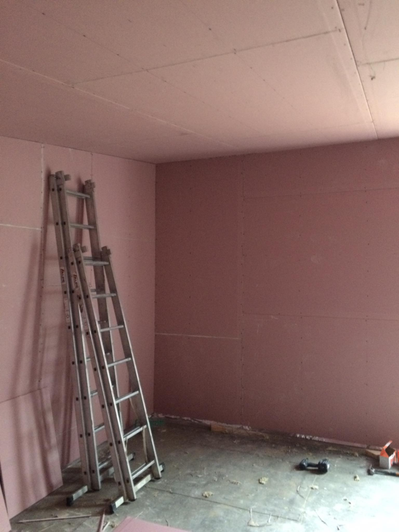 Egyedi megoldásai: Eresz,-és oromtúlnyúlása gyalult deszkával dobozolt. A nagy egybenyitott tér miatt, egy helyszínen készített rétegelt ragasztott tartógerenda viseli a tető súlyát. Funkciójából eredően fontos volt, hogy a külső fényeket, a lehető legnagyobb mértékben kizárjuk. Ennek érdekében fekete belső falakat kapott. Mennyezete ferde, a jobb akkusztikai hatás miatt. A helyiség hajópadló burkolatot kapott, amit fehér lazúrral kezeltünk. Rögzítése nem látszó.