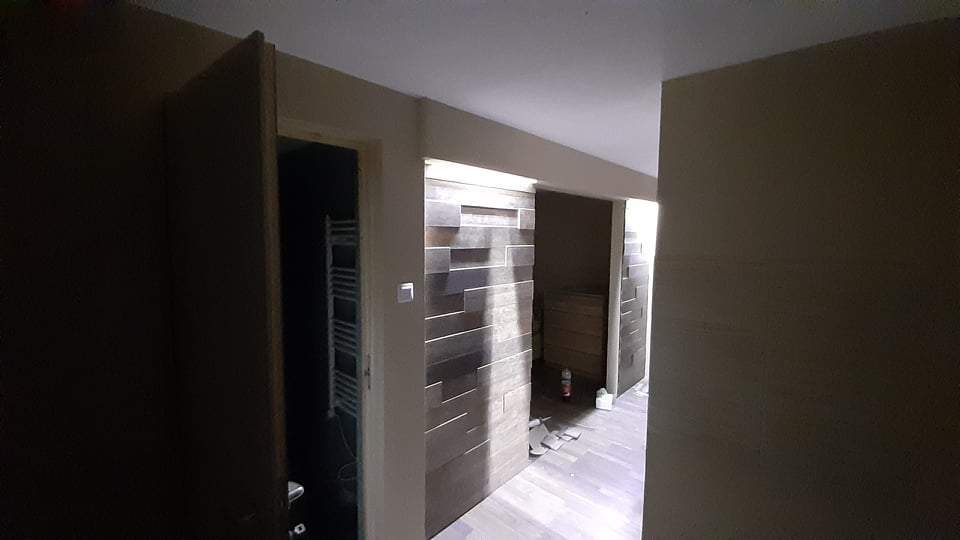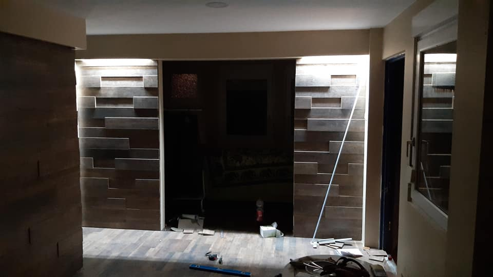 Egyedi megoldásai: A ház vázszerkezetét 3 db irodakonténer alkotja, amik beton cölöpökön állnak. Belső falainak egy része 3d falburkolattal készült, rejtett ledes megvilágítással.