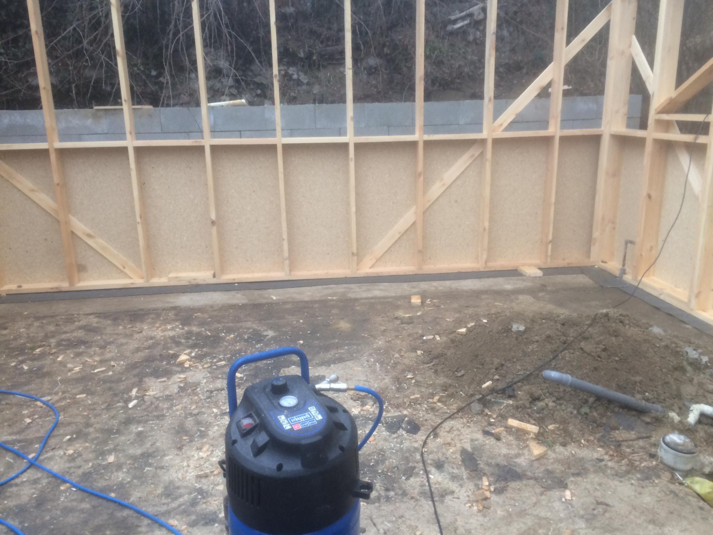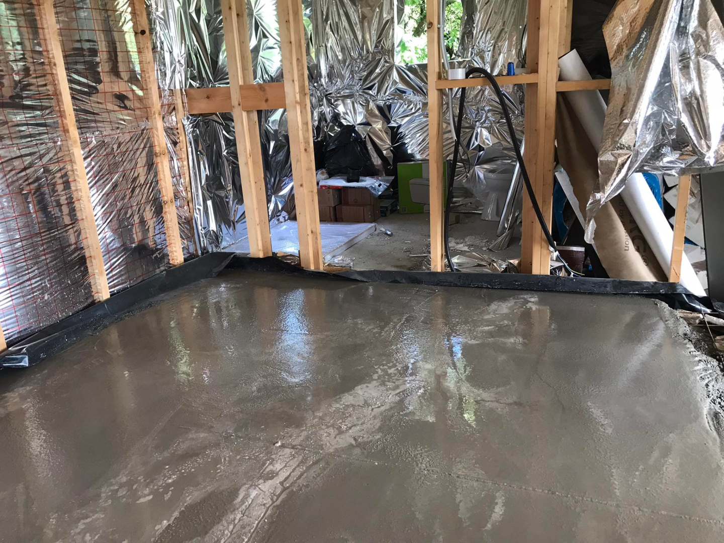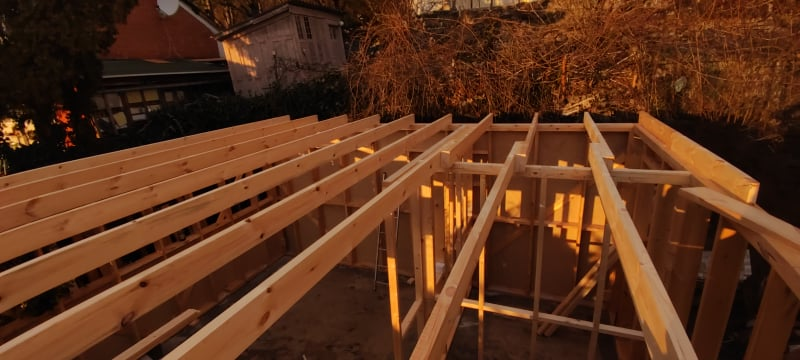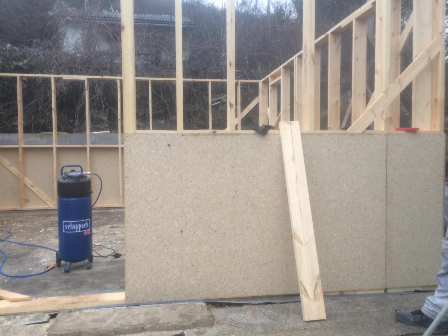 Kihívásokkal teli munka várt ránk Verőcén. A helyszínen állt egy régi épület, amit lebontottunk, és annak a beton alapjára terveztük az új épületet. A buntást követően derült fény a korábbi alap nem megfelelő minőségére, ami már a kezdésnél extra munkát jelentett. A meglévő betont, acél talajcsavarok segítségével megerősítettük, majd ezt követően a ház mögötti domboldalt egy támfallal láttuk el. A támfal és a régi alap közötti részt betonoztuk, így megnövelve a lehetséges alapterületet.
