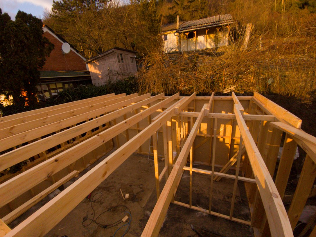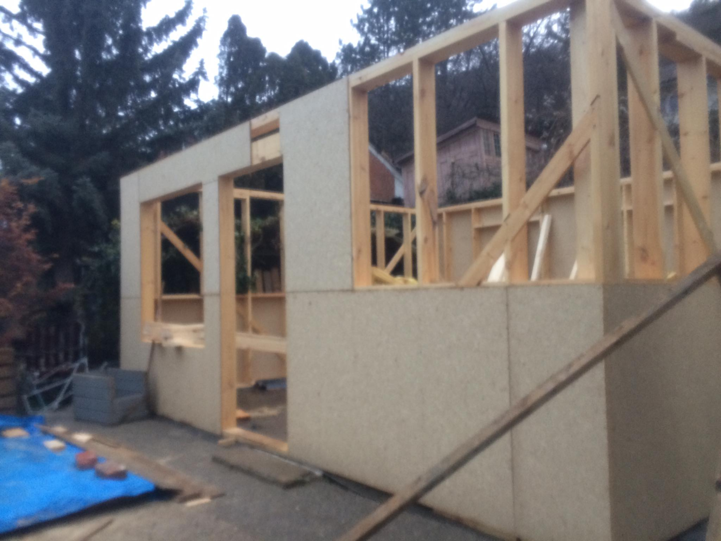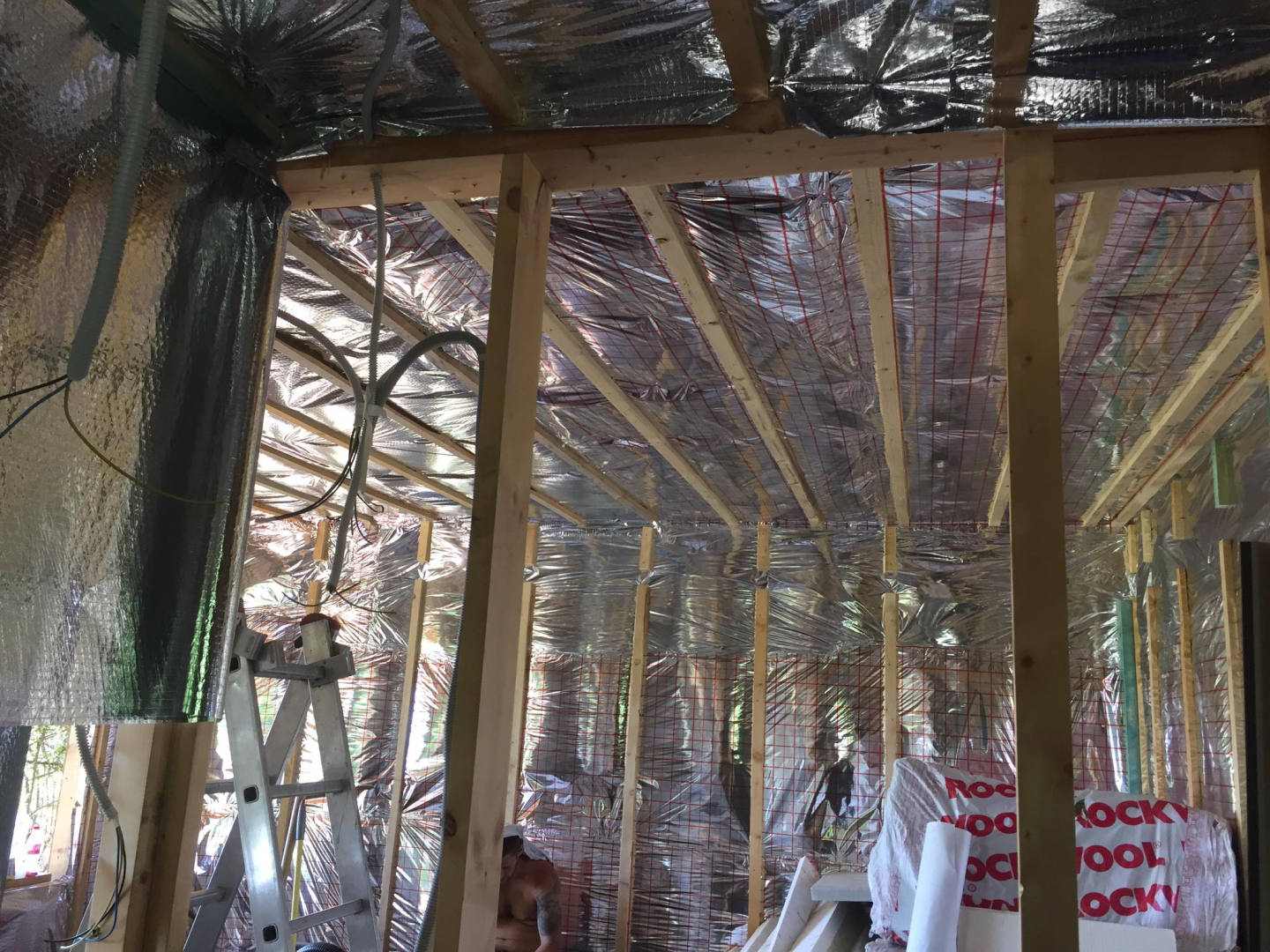 Az épület, megrendelőnk igénye szerint egy nagy térből, és egy fürdőből áll. A gyönyörű panorámára nyíló, egyedi színben készült ablakok biztosítják a benapozottságot. Szigetelése 15 cm falszerkezeten belül+10 cm kívül. Fűtését fűtőpanel biztosítja. A lombos fák árnyékának köszönhetően hűtésre nincs szükség.