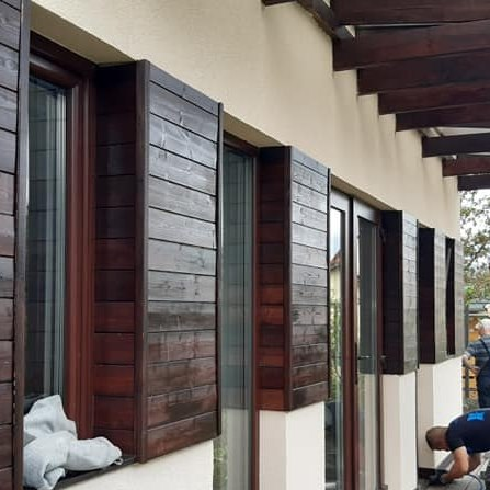 Belső terei gipszkarton falakat kaptak, fehér színben, míg homlokzati burkolata nemesvakolat, mahagóni színű fa berakásokkal. Egyedi színben és méretben készített, műanyag nyílászárókkal ellátott. Cserepeslemez fedést kapott, csüngő ereszcsatornával. Oromtúlnyúlása nincs.