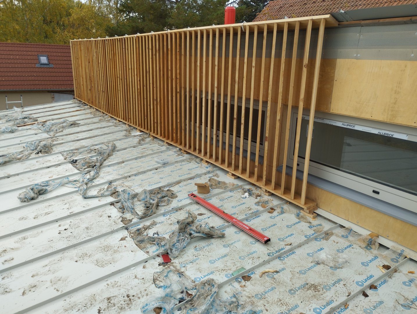 Egyedi megoldásai: eresz,- és oromtúlnyúlás nélküli, rejtett ereszcsatornás, korcolt lemez fedéssel készült épület. Homlokzatát nem látszó módon, rejtett rögzítéssel alakítottuk ki.